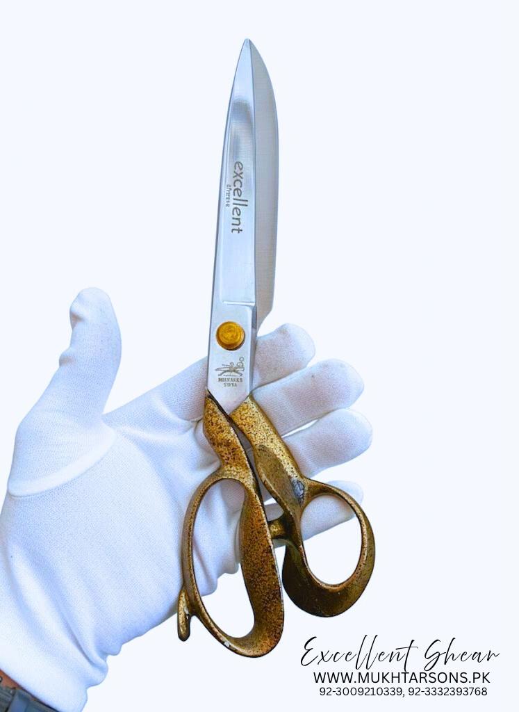 Mukhtar Sons “Excellent” Scissor 12″ Tailor Scissors – Antique Gold Colar Handle